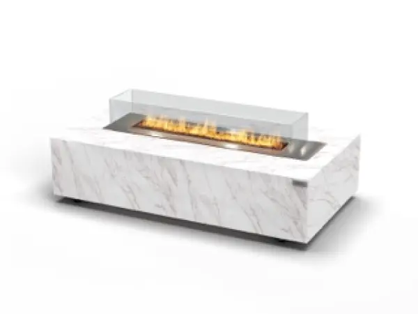 A luxury mobile fireplace for indoor and outdoor use, combining BEV® Technology with elegant Cosentino finishes. Enjoy a smoke-free, real flame controlled via remote or app. Features 6 flame heights, integrated fuel pump, and built-in wheels for flexible placement.