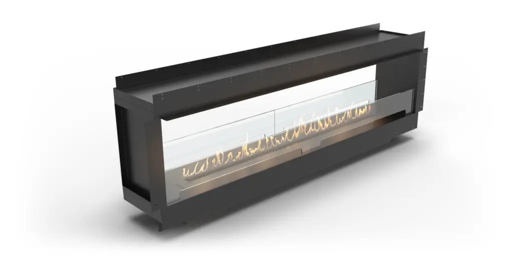 Available in seven installation configurations—including single-sided, corner, three-sided, tunnel, island, and room divider—Forma fits effortlessly into any architectural vision. Choose from multiple burner types (Prime Fire 2.0, FLA4, FLA4+) and lengths ranging from 800 mm to 2700 mm, allowing customisation to suit any space.
